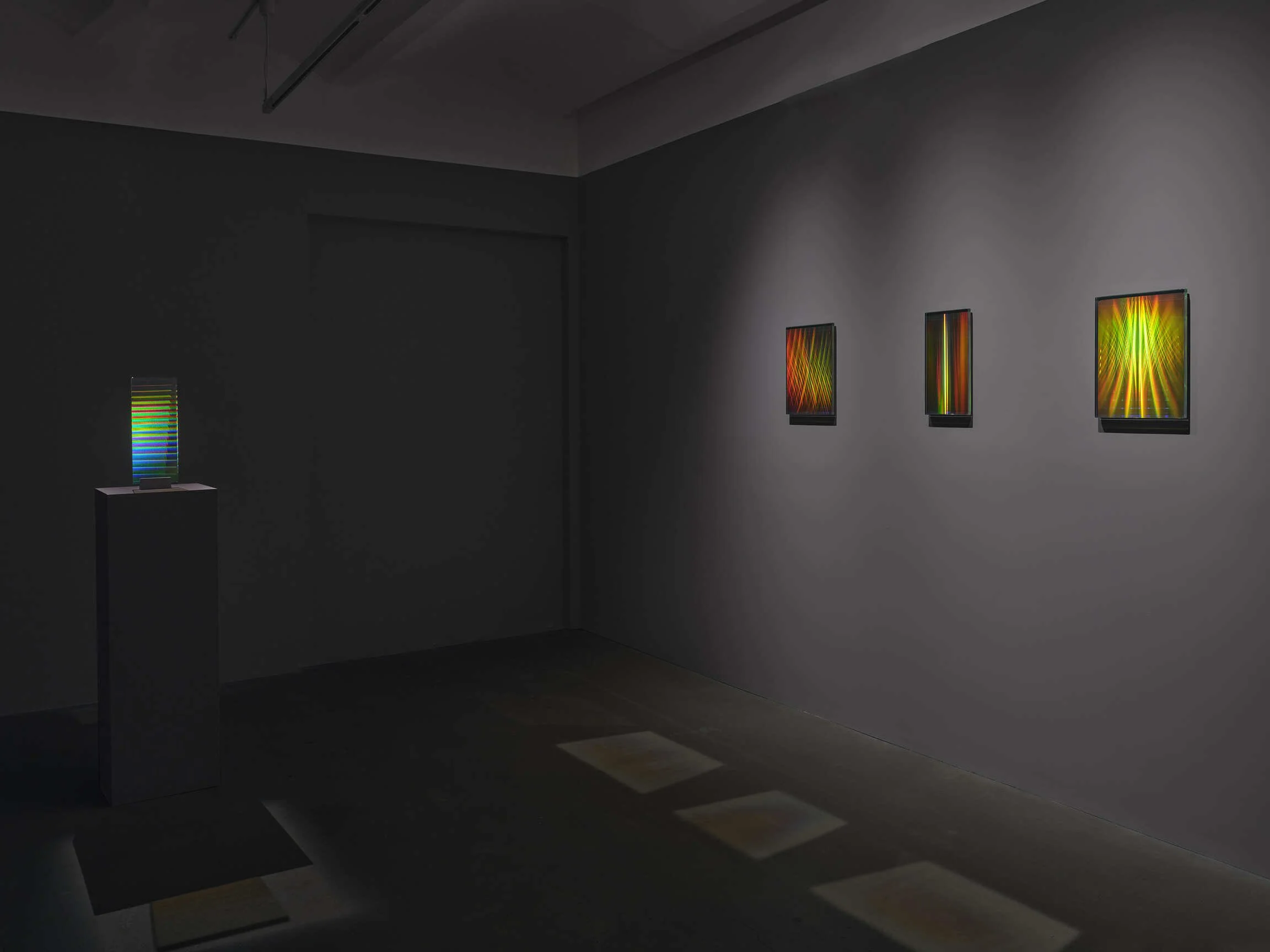 The exhibition features a new laser installation created specifically for the dimensions of the gallery space. Composed of laser light, the installation hovers—magical and fantastical—as the viewer moves through and around a form in which the seemingly solid gives way to the utterly permeable. Through this complex phenomenological experience, we find ourselves navigating a sculptural presence as well as the contradictory material properties of light, which are here rendered in every manifestation: visible and invisible, material and immaterial, enduring and ephemeral. Additionally, four holograms from the artist’s ongoing Orders of Light series present a mesmerizing range of forms and visual experiences conjured solely from the manipulation of light through the holographic process.