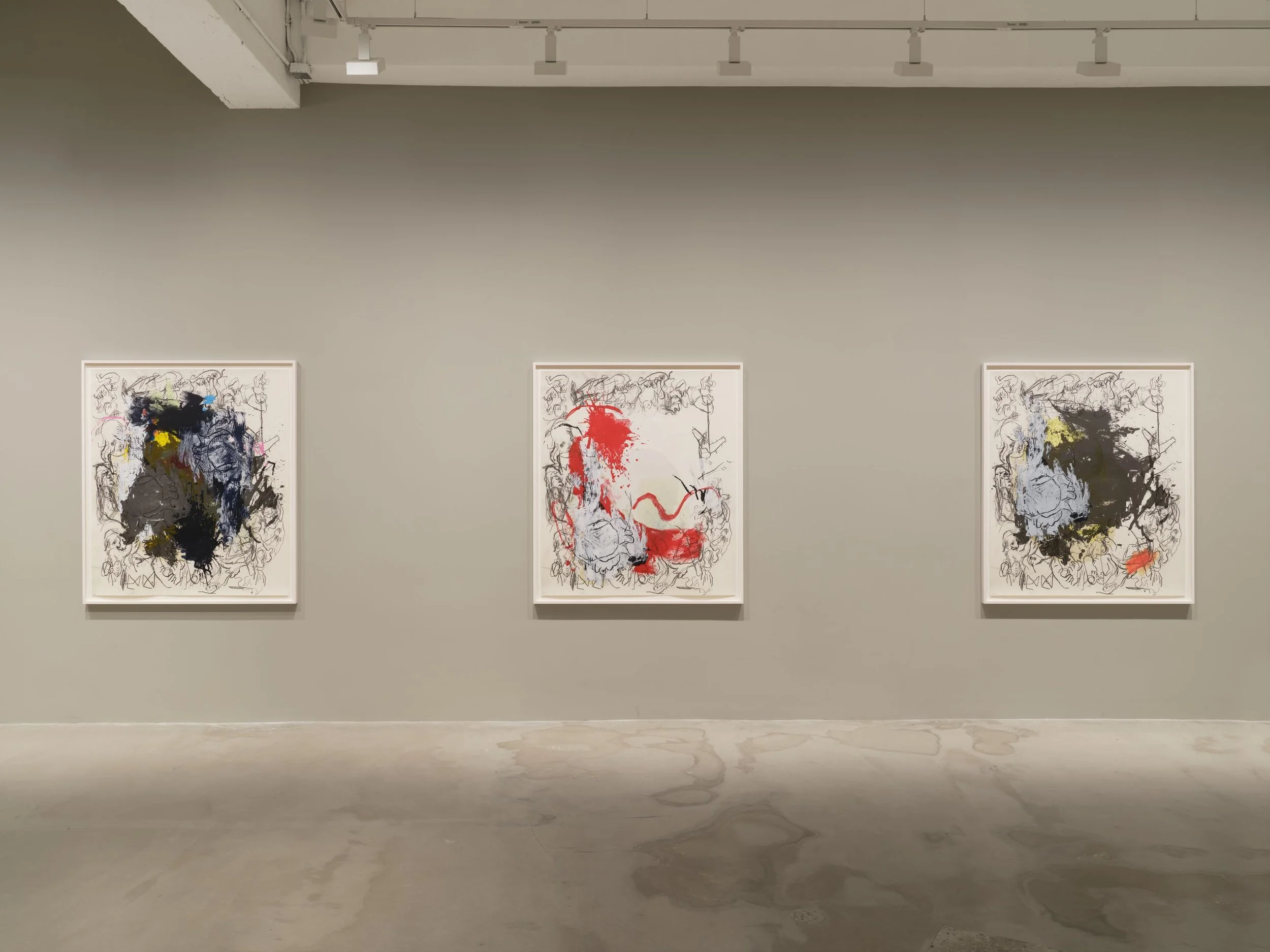 Hauser & Wirth is pleased to present Rita Ackermann’s latest series of paintings and prints in simultaneous exhibitions. Heralding a significant leap in her artistic practice, these prints represent a dramatic convergence of the technical processes of printmaking with Ackermann’s sustained exploration of form, movement and erasure.