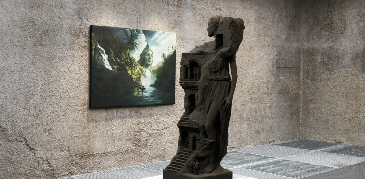 Invites viewers into a world where form and perception continuously shift, evoking spaces that feel simultaneously unearthed, imagined, and alive.