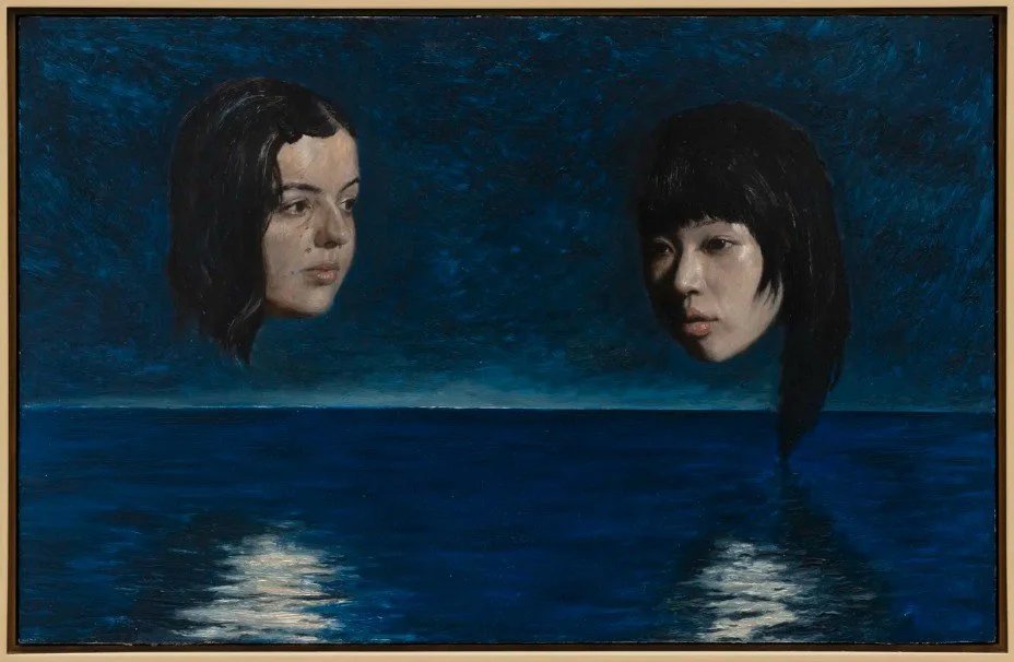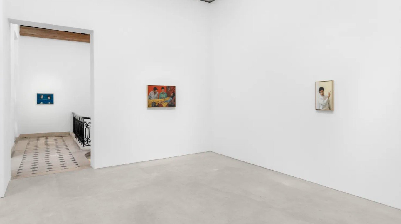 In Résurrectine, Giangiacomo Rossetti creates an atmosphere of self-enclosed, mausoleum-like entombment. Sleepwalking characterizes the intermediary state enacted onto the painter’s subjects, who gaze through windows and passageways (The Party, all works 2025), into or out of mirrors (Counting the Teeth, Here Comes the Child), and other mysterious sources of illumination (Golden Bowl). Rossetti’s paintings operate within a system of chance and patterning that hinges on the doubleness of visual puns and the repetition and difference of form. Reworkings of Francesco Hayez’s Mary Magdalene as a Hermit (1833) and Renoir’s The Umbrellas (1880 – 1886) feature within this constellation of paintings, as do motifs from Domenico Fetti’s elaborate 1615 allegory of melancholy – a marble sculpture of a severed human bust, a skull, the spherical curve of the moon. And there is the dash of arsenic yellow which rhythmically undulates throughout the show, in the way Jacques Deray’s film La Piscine (1969) orbits around the lemon-tinted Gae Aulenti patio furniture (Locus Solus, Poltronova, 1967); the color’s brightness belies the toxicity and instability of its material, serving as a kind of Chekhov’s gun throughout the film and this exhibition.