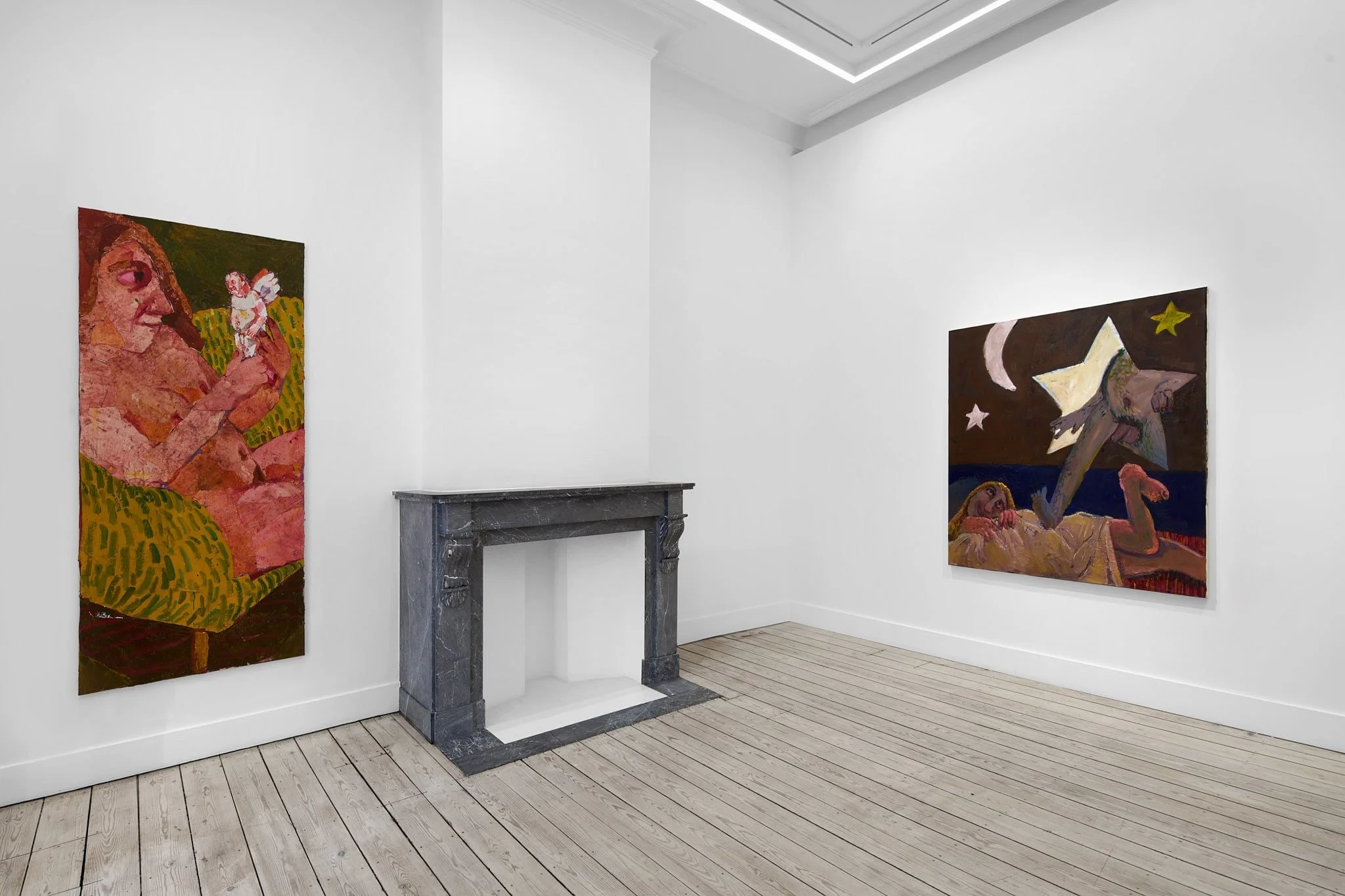 The exhibition marks a subtle departure from Roe's earlier work, embracing a more dreamy, fantastical atmosphere and sensibility. At the heart of this exhibition lies, after all, a deep yearning for connection, a desire to fill the hollow void of loneliness with unfiltered intimacy. Roe’s characters act on this impulse with the same bewildered tenderness that defines her entire body of work.