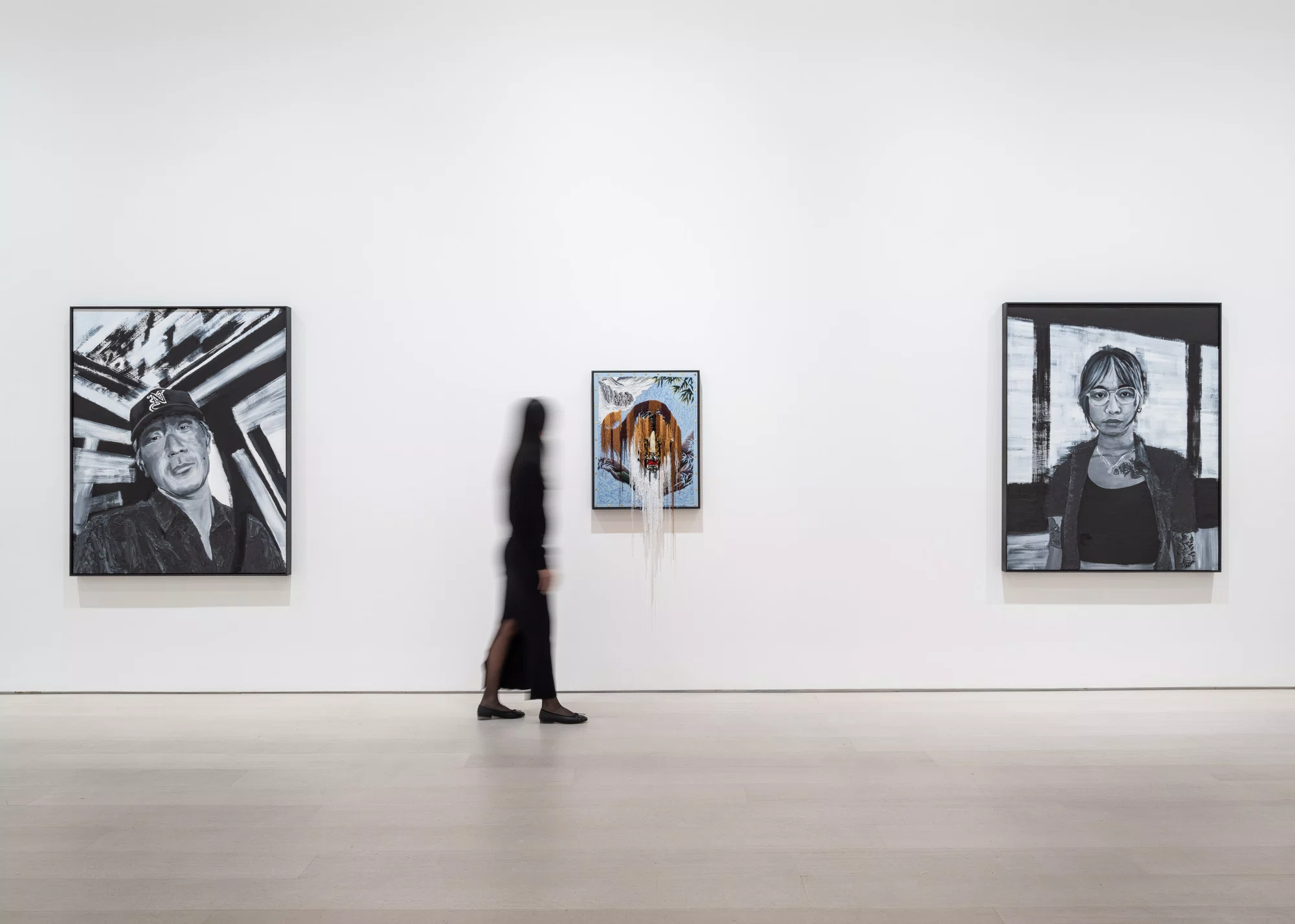 Walking with a Tiger raises questions about the Asian-American diaspora, a subject that has been largely ignored in cultural production until very recently, as it relates to the past, present, and future alike. Based on original photography, Kaino’s portraits—including friends, musicians, and individuals he encountered on the streets of LA— are acts of visibility, bringing new representations of Asian-Americans into conversation with one another and foregrounding enactments of intergenerational communion within the exhibition. Through gestural processes of accumulation and erasure, Kaino uses his brushstrokes to partially obscure various features of the paintings’ subjects, suggesting a disruption or slippage in the fabric of time and a tension between the background and fore