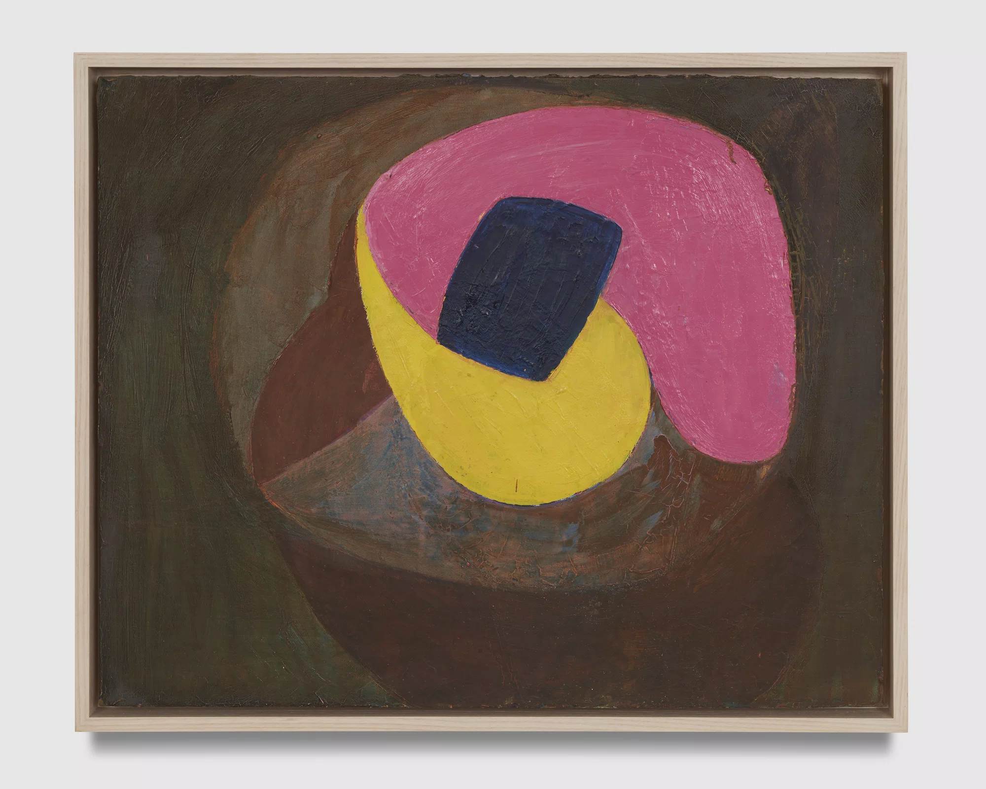 The show’s title, Everything in the World, brings the relationship between Nozkowski’s abstractions and his daily observations to the fore. Anything and everything in his environment—an object, a surface, a quality of light—could capture his curiosity and attention, becoming the source material for a painting.