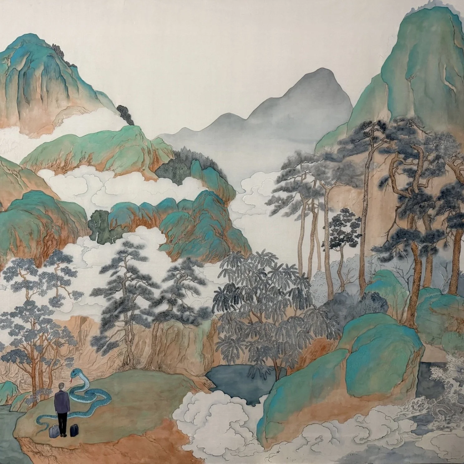 Drawing formally from the literati tradition of Chinese ink painting, Qiu’s visualisation no longer resorts only to mountains and rivers; instead, cities, industrial zones, surveillance and digital networks have become the new infrastructure for defining contemporary life.