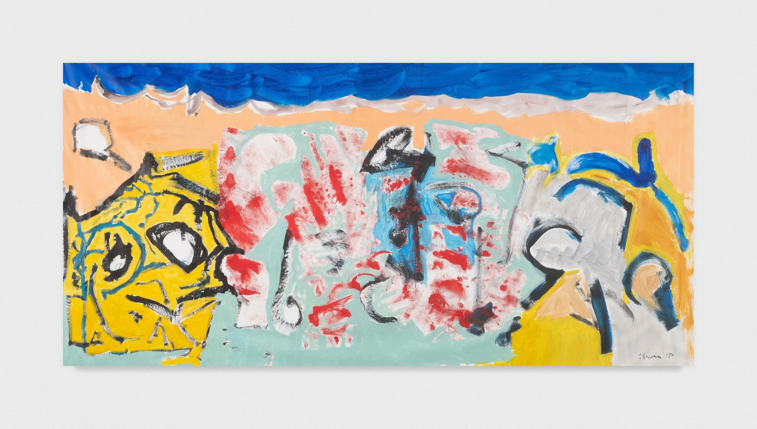 For the new paintings on view at Venus, Lawrence has pulled inspiration from the sounds, themes, and characters of the opera, unifying psychological and expressive forces. Just as Gershwin has deployed musical motifs, Lawrence unites his compositions through repeated visual strategies that include layering and juxtaposing specific colors and duplicating energetic geometric shapes. Overture, which features a frenetic mix of bold primary colors and interlocking shapes, lays out the thematic and visual through-lines of the exhibition.