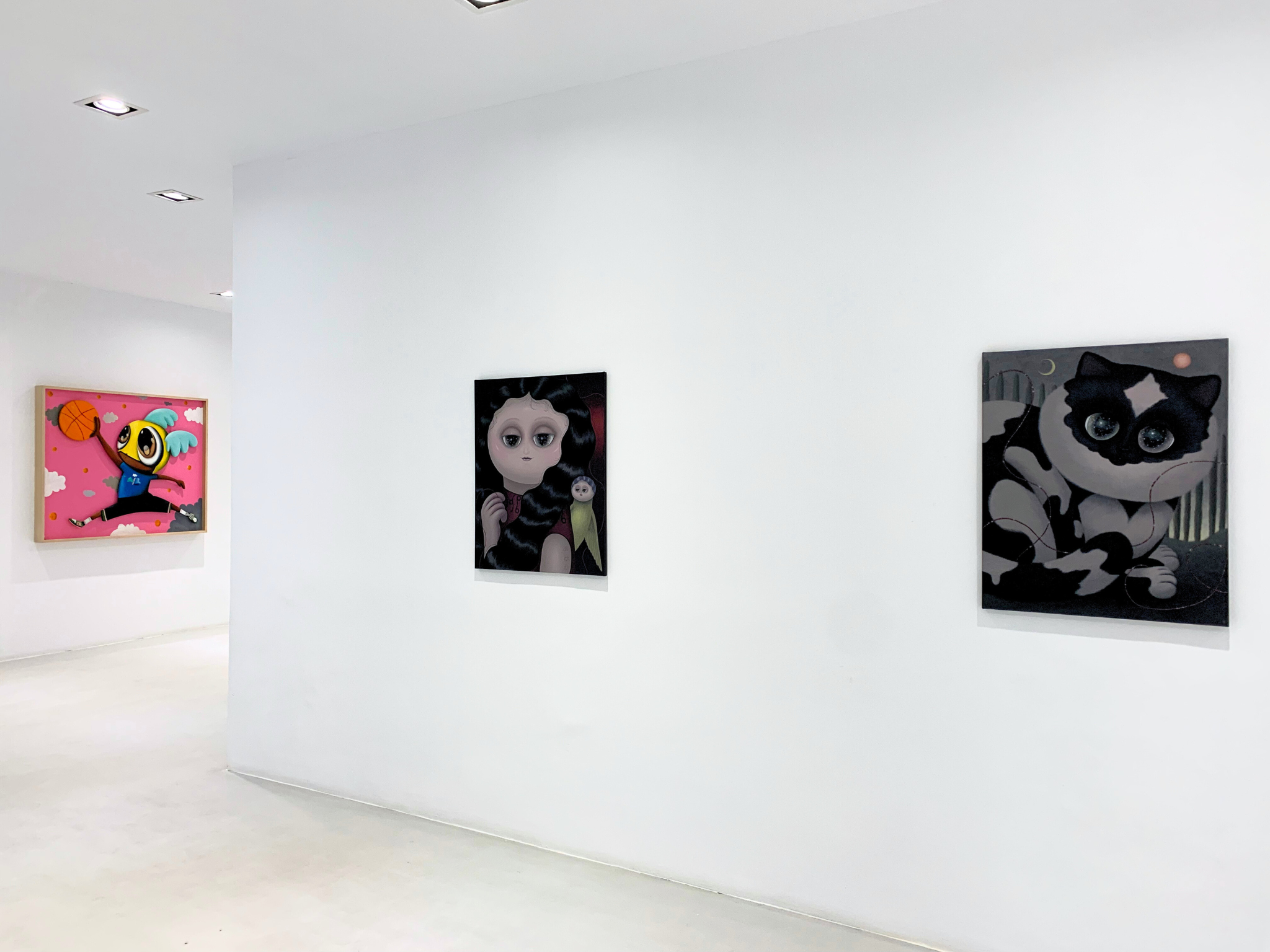 Diren Lee is a storyteller of the unconscious world. The characters in the two works on display in the exhibition, the cat and the character accompanied by a little angel are connected by a red thread, which is a very common symbol in East Asian culture, as it is said that we are all connected by a red thread and that someday we will meet. The characters are expressed as connected creatures, stressing the meaning of “one-being”. “In my work, the cat and I are different, but they symbolize that we are linked by red threads” states the artist.