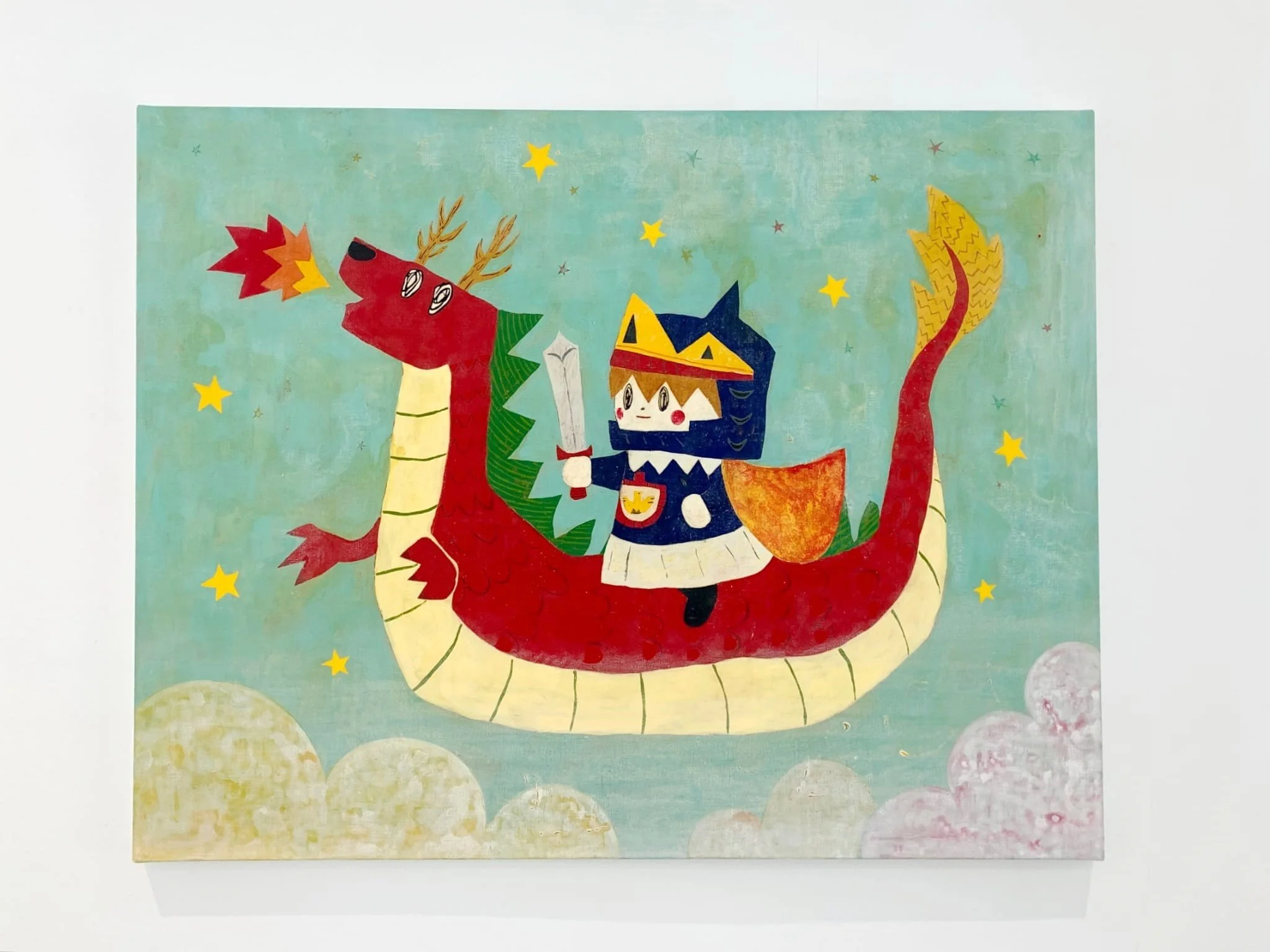 Drawing inspiration from fairy tales, Mitsuuchi incorporates symbols such as knights, warriors, wizards, fairies, princesses, princes, and animals, weaving them into his pieces to blur the line between dreams and reality. His work invites viewers to revisit the fantastical worlds of their childhood.
