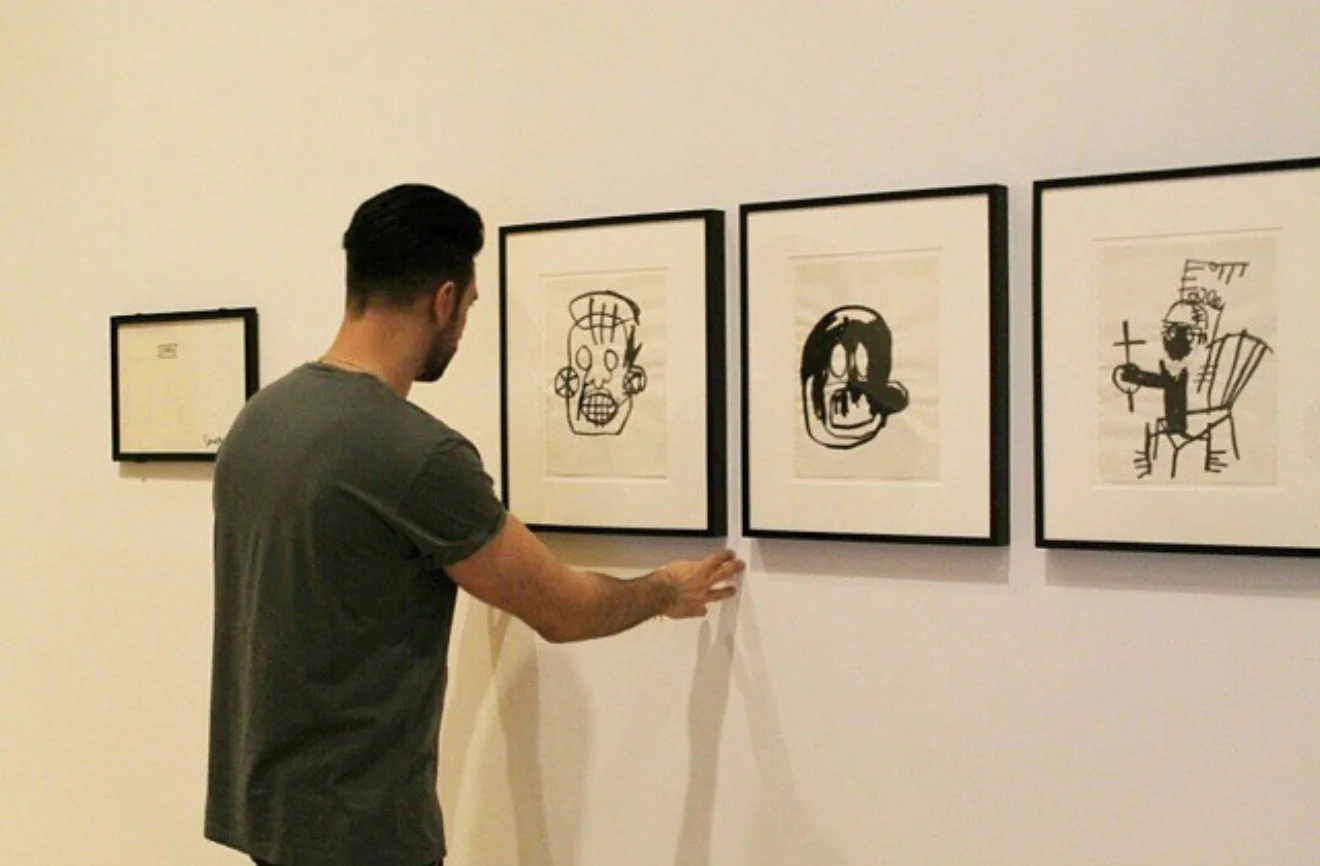 Pablo Villazán working on the installation of Jean-Michel Basquiat solo exhibition, New York, 2016